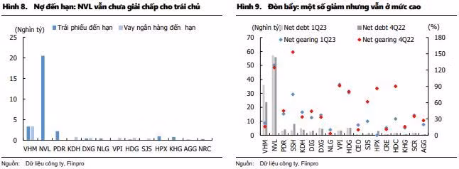 Chứng khoán KIS dự báo trong quý 2/2023 có thể chứng kiến lượng bất động sản đến hạn thanh toán trái phiếu dồi dào lên tới 40-45 nghìn tỷ đồng trong đó Novaland phải thanh toán 8.700 tỷ đồng, Hưng Thịnh (2.300 tỷ đồng), Tập đoàn R&H (2.500 tỷ đồng).