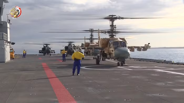Tạp chí Scramble đăng một số bức ảnh cho thấy, các trực thăng Ka-52 và AH-64D Apache của Không quân Ai Cập cũng xuất hiện trên boong tàu ENS Gamal Abdel Nasser (L1010), tàu đổ bộ trực thăng (LHD) thuộc lớp Mistral của Pháp. Đây cũng là lần đầu tiên cả hai loại máy bay trực thăng này cùng được sử dụng trên LHD.