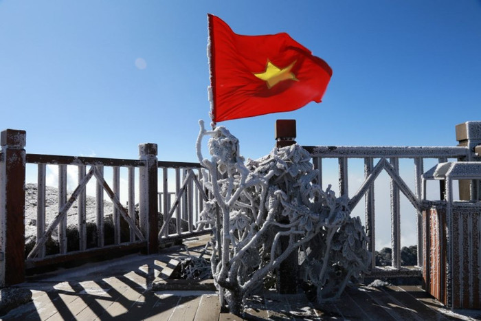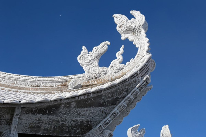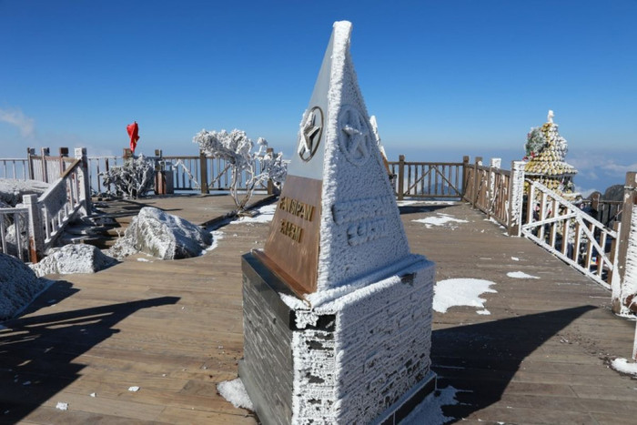 Du khách tham quan Khu du lịch Sun World Fansipan Legend sáng nay sẽ bất ngờ và ấn tượng khi bước ra khỏi quần thể Ga đến cáp treo Sun World Fansipan Legend, toàn bộ không gian thiên nhiên, cây cỏ, chóp tam giác trên đỉnh 3.143m, khu vực sàn gỗ quanh đỉnh, các bậc thang lên đỉnh… phủ kín lớp băng tuyết dày trắng xóa.