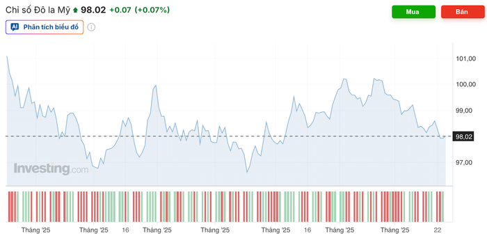Trên thế giới, chỉ số USD Index - thước đo sức mạnh của USD so với 6 đồng tiền chủ chốt (EUR, JPY, GBP, CAD, SEK, CHF) nhích nhẹ lên ngưỡng 98,2 điểm.