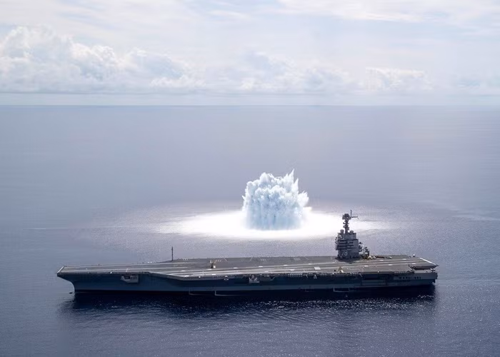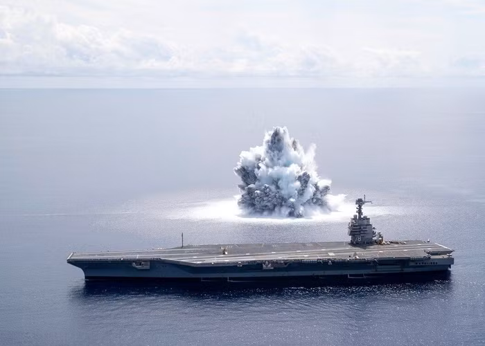 Hải quân Mỹ đã kích nổ quả bom nặng 18.143 kg dưới nước trong khuôn khổ cuộc thử nghiệm kiểm tra sức bền, sự ổn định, độ tin cậy của trang thiết bị tàu sân bay USS Gerald R. Ford CVN78 trước sóng xung kích và sức ép thủy lực của vụ nổ ngầm.
