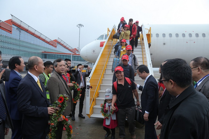 Máy bay A321 mang số hiệu VJ230 chở 180 hành khách khởi hành từ sân bay Tân Sơn Nhất lúc 9 giờ 10 và hạ cánh tại sân bay Vân Đồn lúc 11 giờ 25 cùng ngày. Sau nghi thức phun vòi rồng và múa lân chào đón, lãnh đạo UBND Tỉnh Quảng Ninh, TP Hạ Long, huyện Vân Đồn đã trao những vòng hoa tươi thắm cho phi hành đoàn và những vị khách đầu tiên.