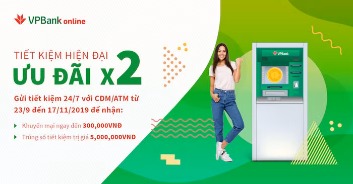 Theo đó, khách hàng lần đầu gửi tiết kiệm trực tuyến tại máy CDM/ATM với số tiền từ 30 triệu VNĐ kỳ hạn 6 tháng trở lên, sẽ được nhận ngay tiền thưởng khuyến mãi lên đến 300.000 VNĐ. Số tiền này sẽ được chuyển vào tài khoản của khách hàng ngay sau khi khách hàng gửi tiết kiệm thành công.