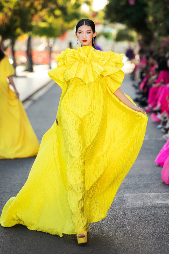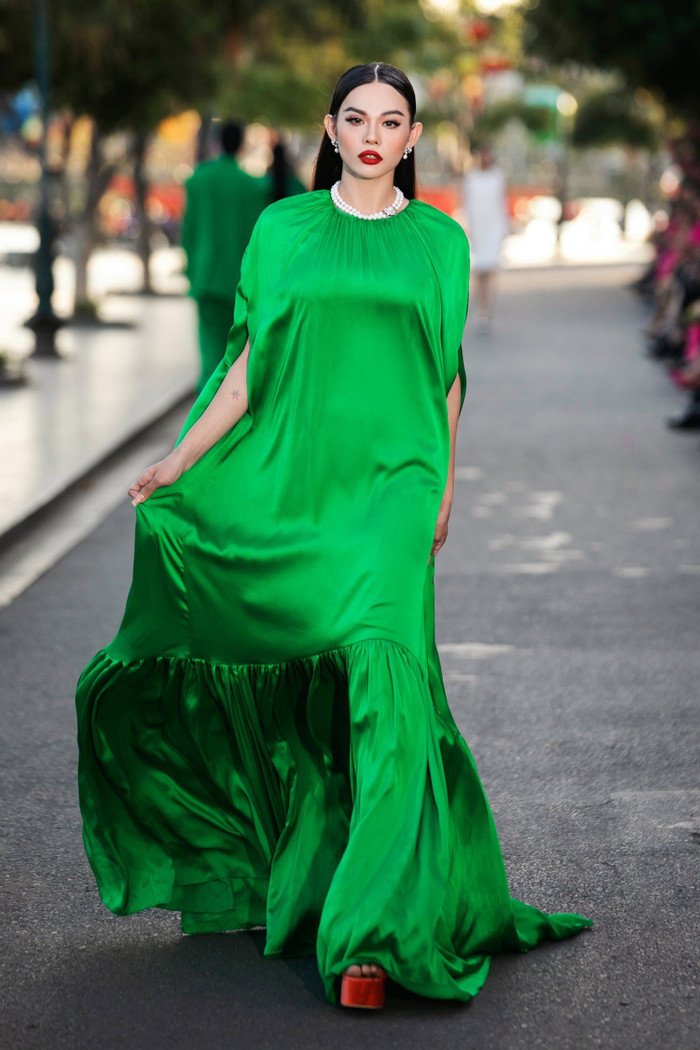 Khép lại show diễn là bộ ba vedette Võ Hoàng Yến, Vũ Thu Phương và Tiểu Vy. Hình ảnh kết show đầy thời trang mà cũng gợi nhắc Vùng trời bình yên bởi hình ảnh cánh diều tuổi thơ.