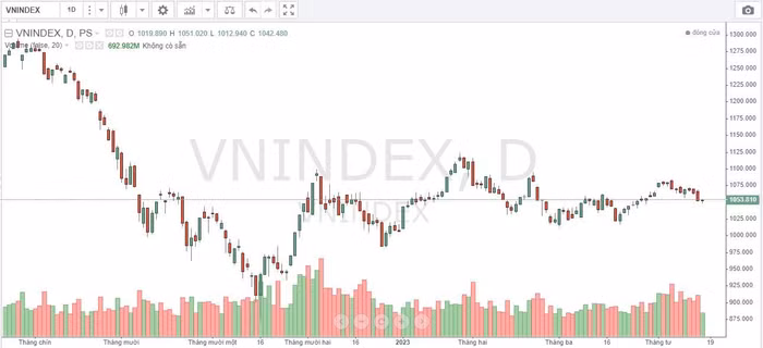 Chứng khoán ngày 17/4, VN-Index đóng cửa tăng nhẹ và kết phiên với cây nến doji đi kèm thanh khoản rất thấp, cho thấy chỉ là tín hiệu hồi phục nhẹ trở lại sau 3 phiên giảm điểm liên tiếp. Chỉ số vẫn đang duy trì ở trong vùng hỗ trợ ngắn hạn là điểm cân bằng giai đoạn trước đó với vùng chỉ số 1.050 – 1.055 điểm.
